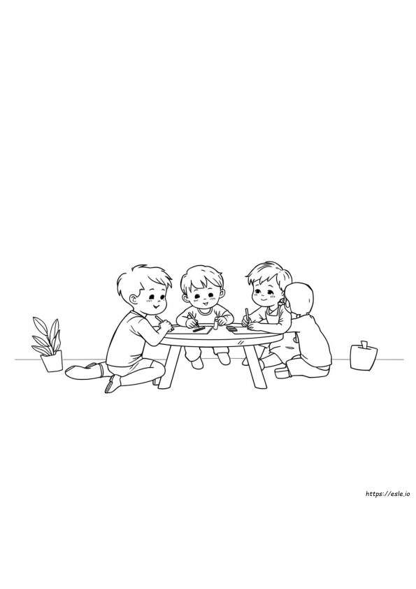 Küçük bir masanın üzerine her çocuğa bir boyama kağıdı, bir bardak dolusu boya kalemi ve isminin yazılı olduğu bir etiket koyun. Çocuklar masaya oturduğunda kendi alanlarını keşfetmenin heyecanını yaşar.